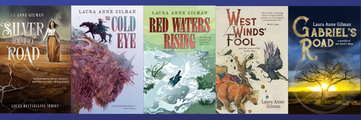 Laura Anne Gilman’s work has been hailed as “a true American myth” by NPR, and praised for her “deft plotting and first-class characters” by Publishers Weekly. She has won the Endeavor Award for THE COLD EYE, and been shortlisted for a Nebula, (another) Endeavor, and a Washington State Book Award. Her work includes the Devil’s West trilogy, the Cosa Nostradamus urban fantasy series, the Vineart trilogy, and the story collection WEST WINDS’ FOOL. Her upcoming move, UNCANNY TIMES, will be out from Saga Books in 2022.